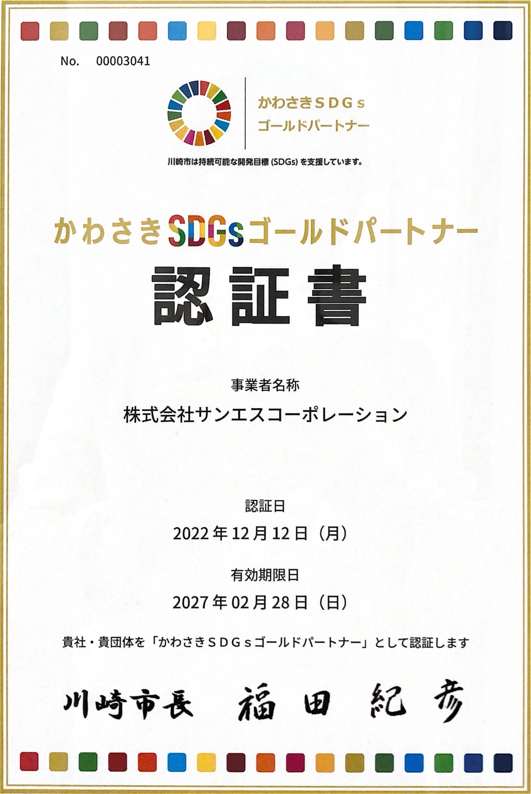 「かわさきSDGsゴールドパートナー」として認定されています。